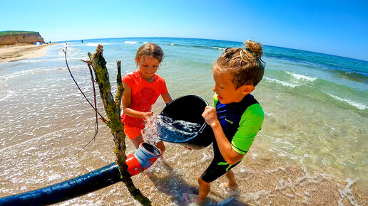 Построили огромный бассейн из пленки и песка с детьми на пляже!