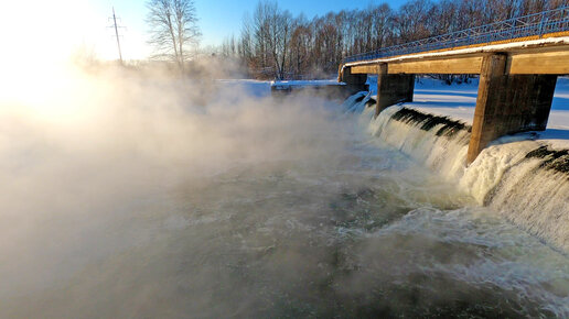 Плотина на реке Малая Кокшага во время морозов | город Йошкар-Ола