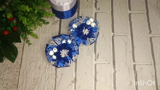 СМОТРИТЕ какой зимний цветок у меня получился МК бантиков из атласной ленты 2,5 и 5 см