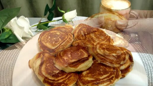 Пышные творожные оладьи с яблочной начинкой (без дрожжей)