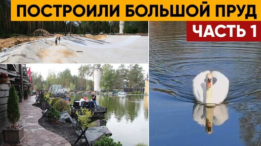 Строительство большого пруда из резины и камня.