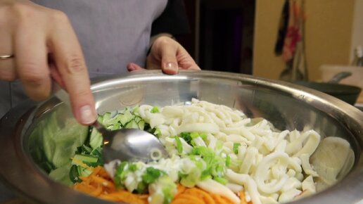 Готовила новый салат с кальмаром! Быстро и вкусно.