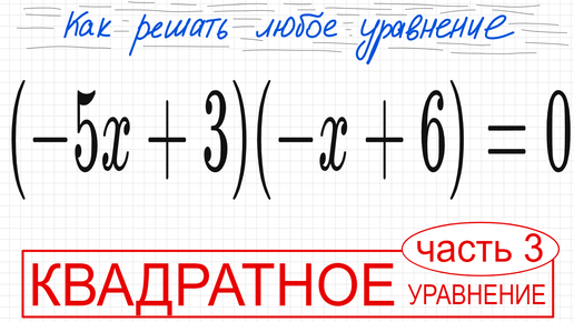 №1 Квадратное уравнение со скобками (-5х+3)(-x+6)=0 Как избавиться от скобок в уравнении Как решить уравнение 8кл 9кл ОГЭ 10кл 11кл ЕГЭ