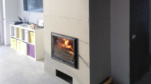 Каминная топка Эльба 700, в облицовке из фиброцементной плиты.