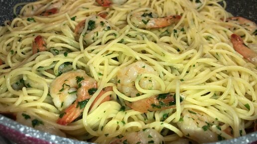 вкуснейшая паста с креветками чесноком и петрушкой!