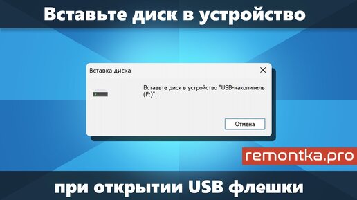 Вставьте диск в устройство при открытии USB флешки — варианты решения в Windows 11/10/8.1/7