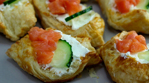 Покупаю слоёное тесто и готовлю вкуснятину: подаю вместо горячих бутербродов на завтрак или как закуску (начинки меняю, просто и быстро)