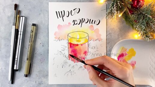 🔥Как нарисовать свечу и мягкий плед АКВАРЕЛЬЮ?