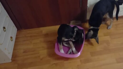 😆У щенков новая игрушка - тазик 😆