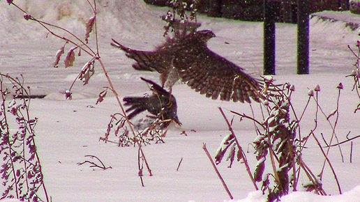 Дрозды-рябинники едят рябину, а ястреб - рябинника