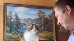 "Мяяяу! А как же я?" Котик тоже захотел любви и ласки пока хозяин общался с песиком)