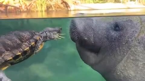 У настоящей дружбы не существует преград. Невероятно милая история ламантина и черепашки