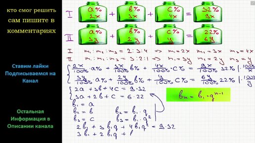 Математика Проценты содержания (по весу) спирта в трех растворах образуют геометрическую прогрессию. Если смешать первый, второй и третий