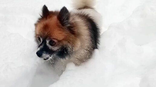 Хомячок в сугробах. Шпиц Джоли и настоящяя зима!