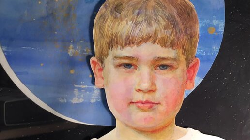 Илюша. Бумага акварель, темпера, 2 слоя стекла. 2022год