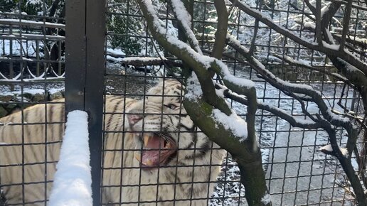 Настоящая зимняя сказка! Белый тигр на снегу! Зоопарк «СКАЗКА»!