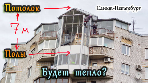 Сложное остекление балкона в системе Татпроф, снаружи альпинистами. Фигурный Балкон 7 высотой.