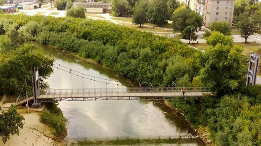 Город Рубцовск. Мост на набережной Петрова. Съемка с дрона