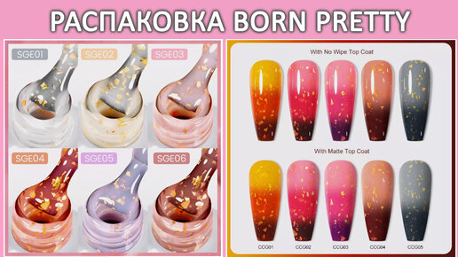 Новинки Born Pretty распаковка / Color Changing Gel Polish | Борн Претти гель с золотой поталью Glitter Flakes Quick Extension Gel