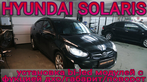 HYUNDAI SOLARIS установка bi-led модулей в рефлектор, с дополнительной функцией дхо/габарит/поворот