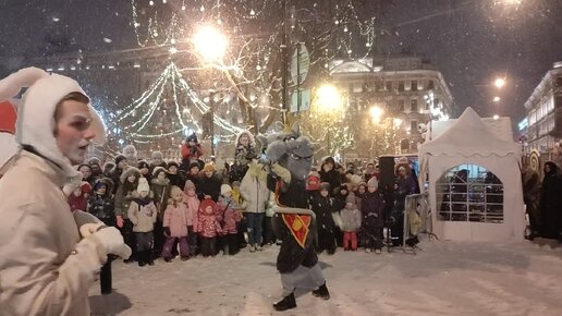 Новогоднее представление для детей по сказке про Щелкунчика и Мышиного короля на главной Рождественской ярмарке в Санкт-Петербурге...