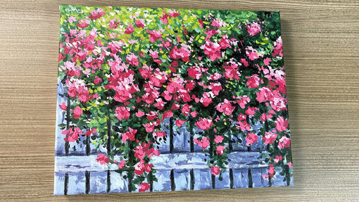 Рисуем Цветочный забор в саду. Живопись акрилом. Картина на холсте