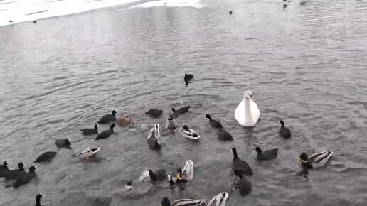 Лебеди и утки зимой в Гатчине