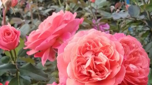 Розы Emilien Guillot, Shocking Blue и Tickled Pink. Прогулка по моему розарию. Фрагмент 15. Видео от 20.08.22г.