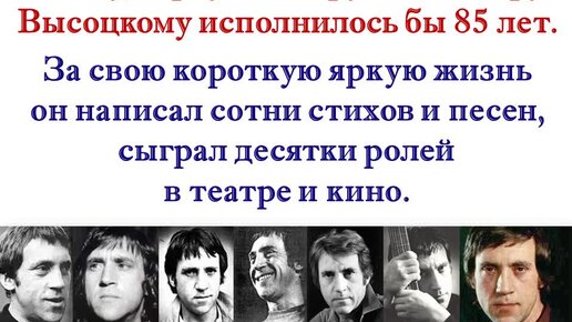 Владимир Высоцкий: «Я, конечно, вернусь…» (к 85-летию со дня рождения)