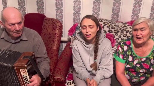 Все тропинки снежком запорошены - спели под гармонь с бабушкой и дедушкой