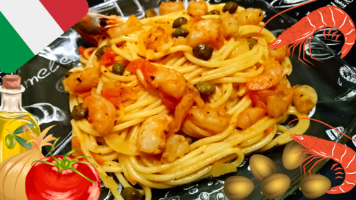 СПАГЕТТИ С КРЕВЕТКАМИ И КАПЕРСАМИ / Вкусный, сытный и быстрый ужин по-итальянски