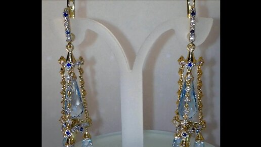 СЕРЬГИ" БРИОЛЕТЫ" ГОЛУБОЙ ТОПАЗ. ЗОЛОТО. ТОПАЗЫ.БРИЛЛИАНТЫ. САПФИРЫ. Ватсап:+79117047793