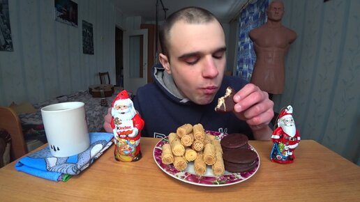 МУКБАНГ/АСМР СЛАДОСТИ/CHOCO PIE/ШОКОЛАДНЫЙ САНТА/ KINDER/ВАФЕЛЬНЫЕ РУЛЕТИКИ/ЧАЙ/EATING/ ASMR/ Mukbang #431
