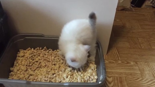 Котёнок 1 месяц . Приучаем к тазику