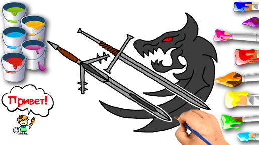 КАК НАРИСОВАТЬ ПАРНЫЕ МЕЧИ ВЕДЬМАКА / РАСКРАСКА ДЛЯ ДЕТЕЙ / УЧИМСЯ РИСОВАТЬ