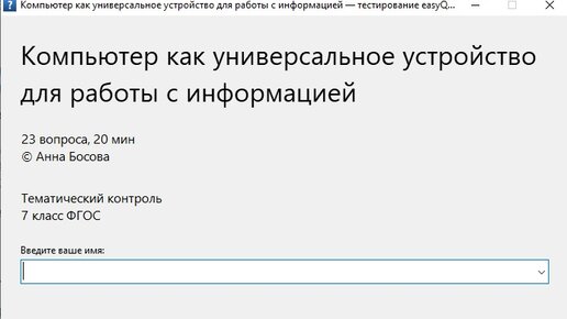 Интерактивный тест. Компьютер как универсальное устройство для работы с информацией