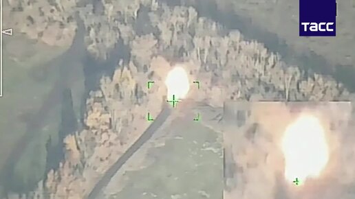 Кадры боевого применения высокоточных боеприпасов нового поколения для уничтожения одиночных целей оборудованных позиций и бронетехники ВСУ