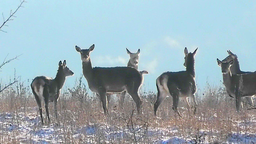 Олени в морозный день вышли из леса погреться на солнце #олени #благородныйолень