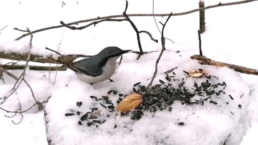 Пришёл покормить птичек грецкими орехами.