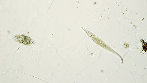 Битва одноклеточных! Инфузория-сувойка боролась за жизнь, сокращая свой стебелёк, но хищная инфузория оказалась сильнее!