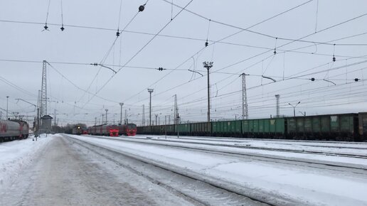 Зелёный электровоз ВЛ11.8-614/615Б с полувагонами