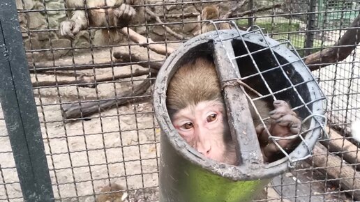 Забавные японские макаки.Маленькая хитруля нашла способ получать еду первой.Зоопарк СКАЗКА.Ялта 6.11.2022