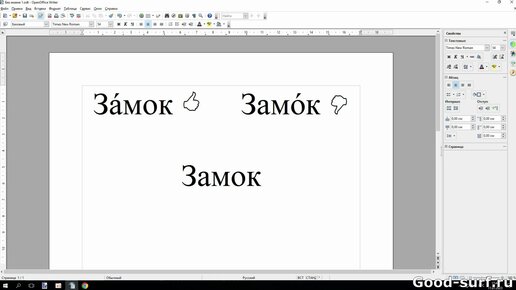 Ставим ударения в словах и вставляем спецсимволы в текст в OpenOffice Writer
