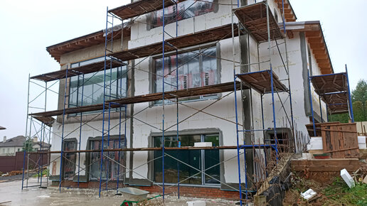 Утепление газобетона фасадным пенопластом, дюбеля, пропенивание швов пенопласта, штукатурка оконных откосов, уголки, капельники, сетка, клей