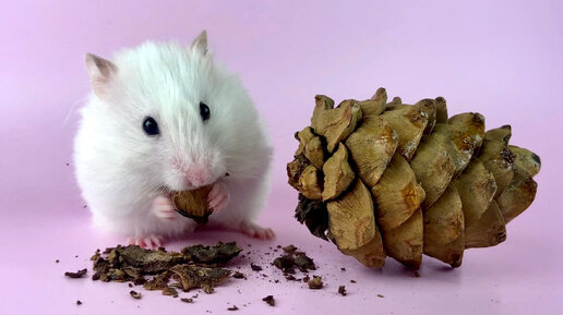 Хомячку нравится доставать орешки из шишки ❤️🐹