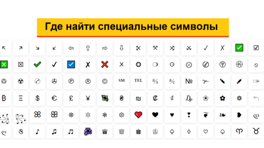 Сайт, на котором есть много специальных символов для вставки в редактор Word или в соцсети
