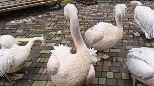 Розовые пеликаны свободно гуляют по территории зоопарка СКАЗКА.Ялта 6.12.2022