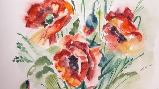 "МАКИ" АКВАРЕЛЬ художник Елена Сизова #акварель #цветы_акварелью #акварельная_техника #уроки_изо