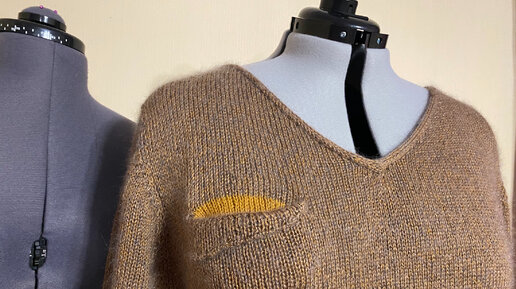 Классический пуловер: потайной карман, вытачки, отделка. Подробно и наглядно #вязаниенаспицах
