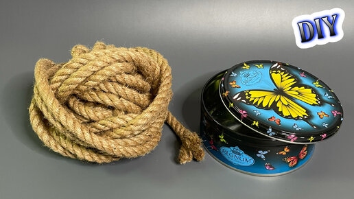 Всегда покупаю много джута что бы сделать что-то полезное,а в этот раз соединил его с банкой от печенья и не пожалел. Получилось красиво